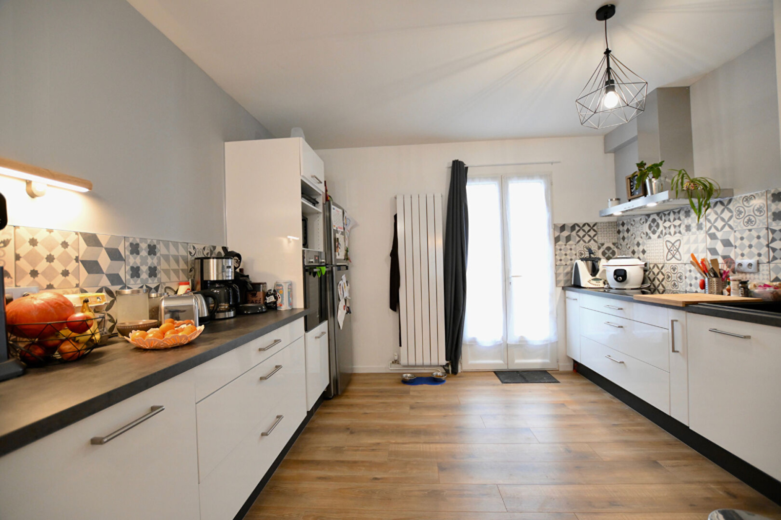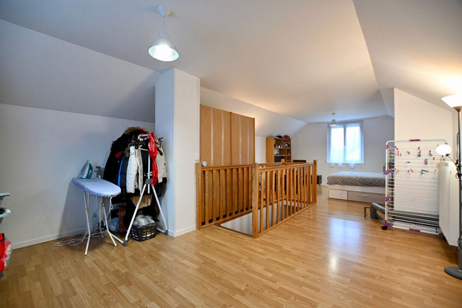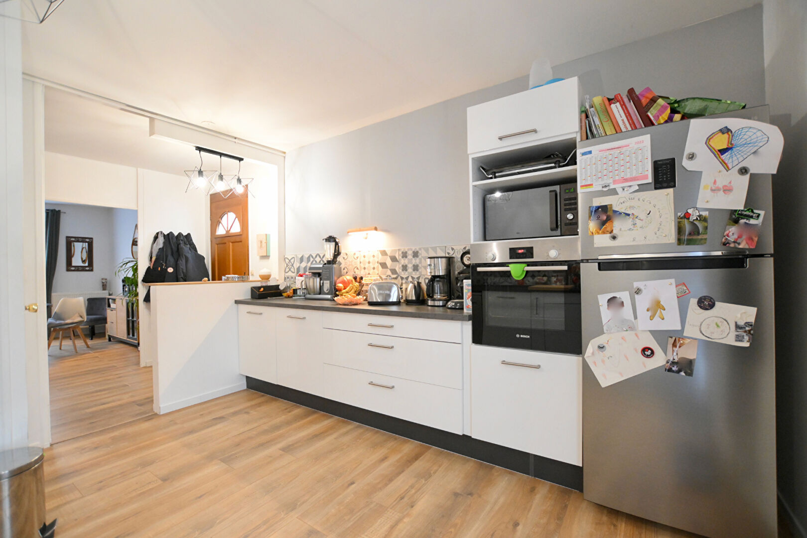 À proximité des établissements scolaires, sportifs et commerces. Pavillon composé de plain pied d'une entrée, un séjour lumineux, une cuisine ouverte aménagée et équipée donnant sur la terrasse, une salle de bains avec douche, un WC indépendant, un dressing et deux chambres, à l'étage un grand espace ouvert comprenant une chambre. Belle rénovation, Contre l'habitation un garage atelier, terrain autour du bien. Fenêtres doubles vitrage, chauffage central Gaz de Ville. Je suis à votre écoute.