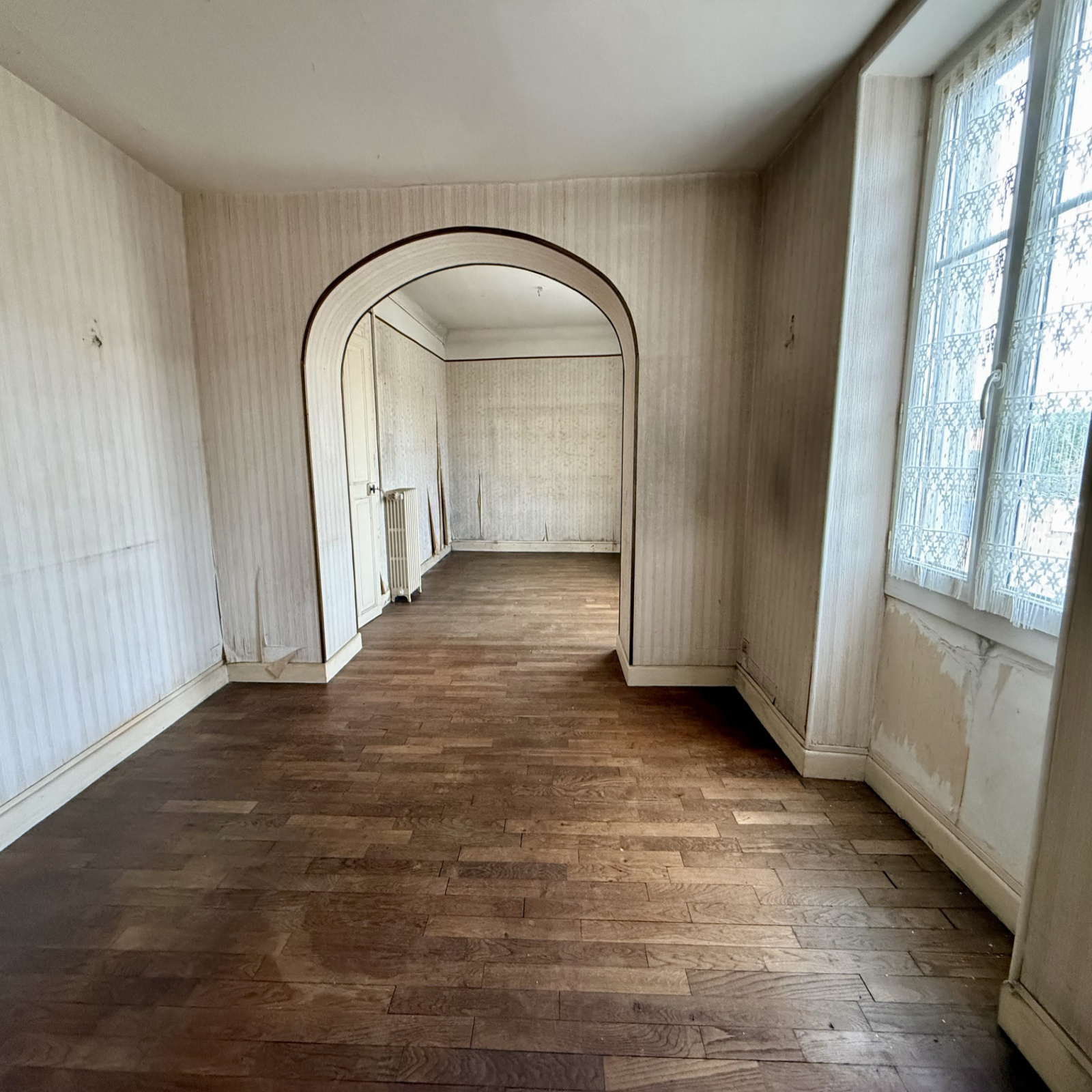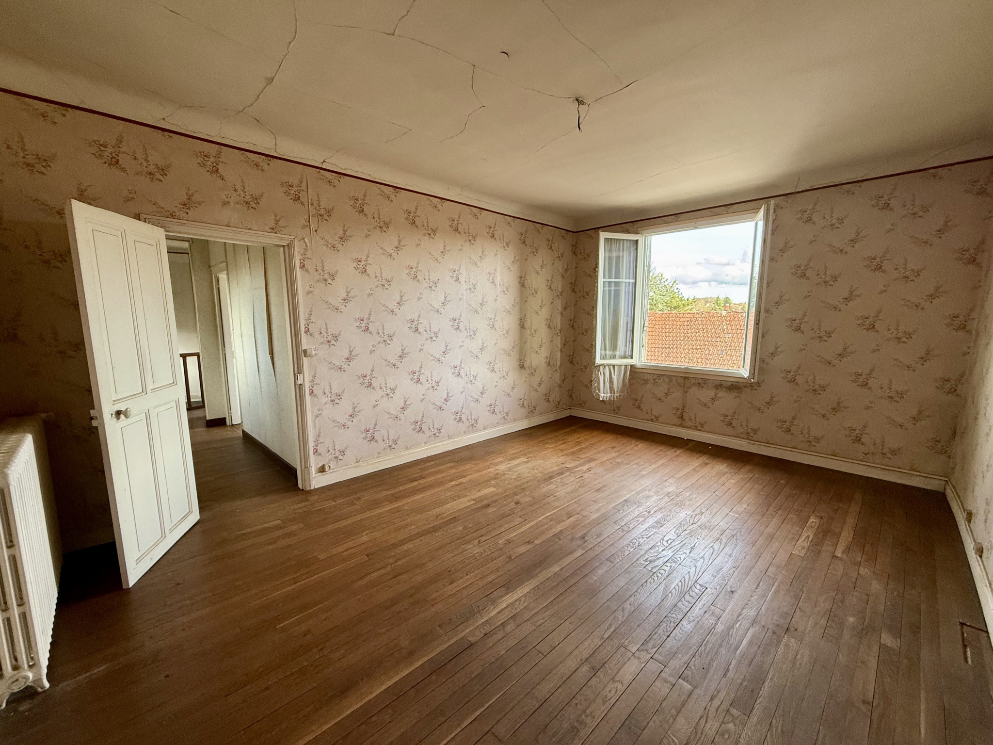 À l’étage, le palier dessert trois chambres baignées de lumière, offrant de multiples possibilités d’aménagement selon les besoins d’une famille ou d’un projet locatif. Au niveau supérieur, un grenier entièrement aménageable laisse entrevoir un agrandissement significatif de la surface habitable, idéal pour créer des chambres supplémentaires, un espace bureau ou une suite parentale.