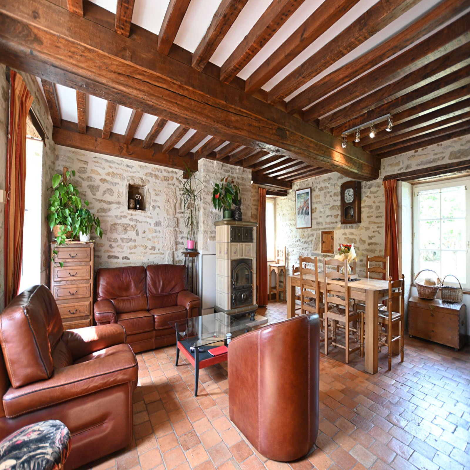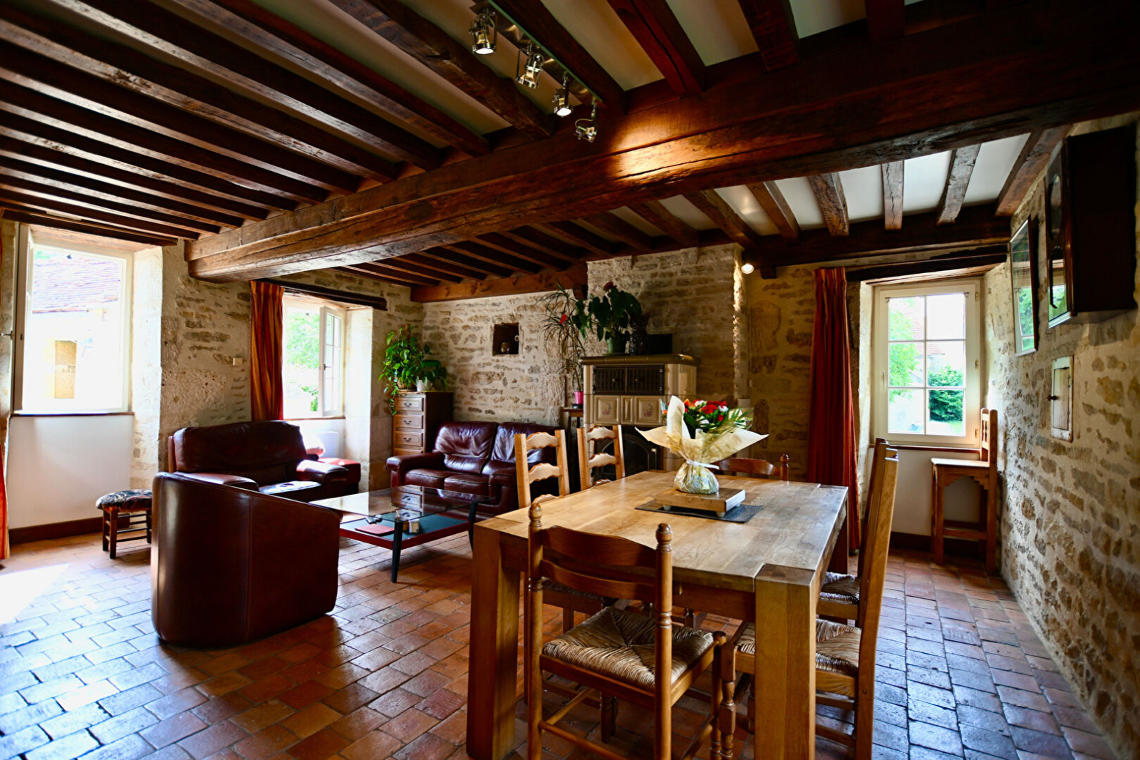 Très belle maison en pierre à 5 minutes des commerces d'Époisses. L'habitation principale élevée sur une cave voûtée et son garage comprend en rez-de-chaussée une entrée, un séjour lumineux comprenant un poêle de masse en faïence, une cuisine ouverte, une buanderie, une salle d'eau, un WC indépendant et une chambre, au dessus sur l'ensemble un grenier aménageable (possibilités d'une suite parentale ou de deux chambres avec salle de bains). Contigu à l'habitation en rez-de-chaussée une entrée sur le séjour-cuisine équipée d'un poêle à bois et une salle d'eau avec WC, au-dessus au niveau du rez-de-jardin une pièce à usage de chambre. Donnant sur la cour une pièce aux multiples usages (bureau, chambre, salle de jeux, etc.) équipée d'un poêle à bois. Dans la cour un bûcher et une dépendance à usage de stockage, un jardin et face au bâtiment un verger avec un petit chalet (abri de jardin). Toiture neuve et assainissement neuf. Grande qualité des matériaux d'époques, dalles de Bourgogne, tomettes, plafond à la Française. Amoureux de la belle pierre, ce bien est pour vous.
