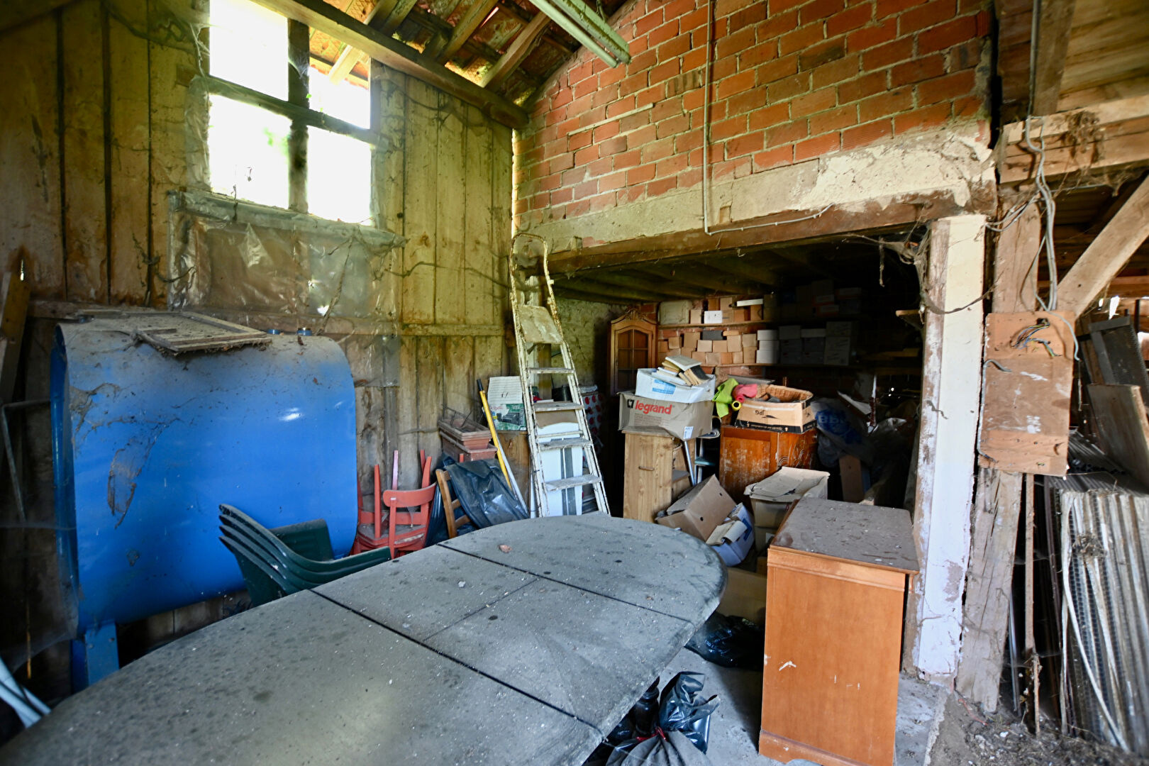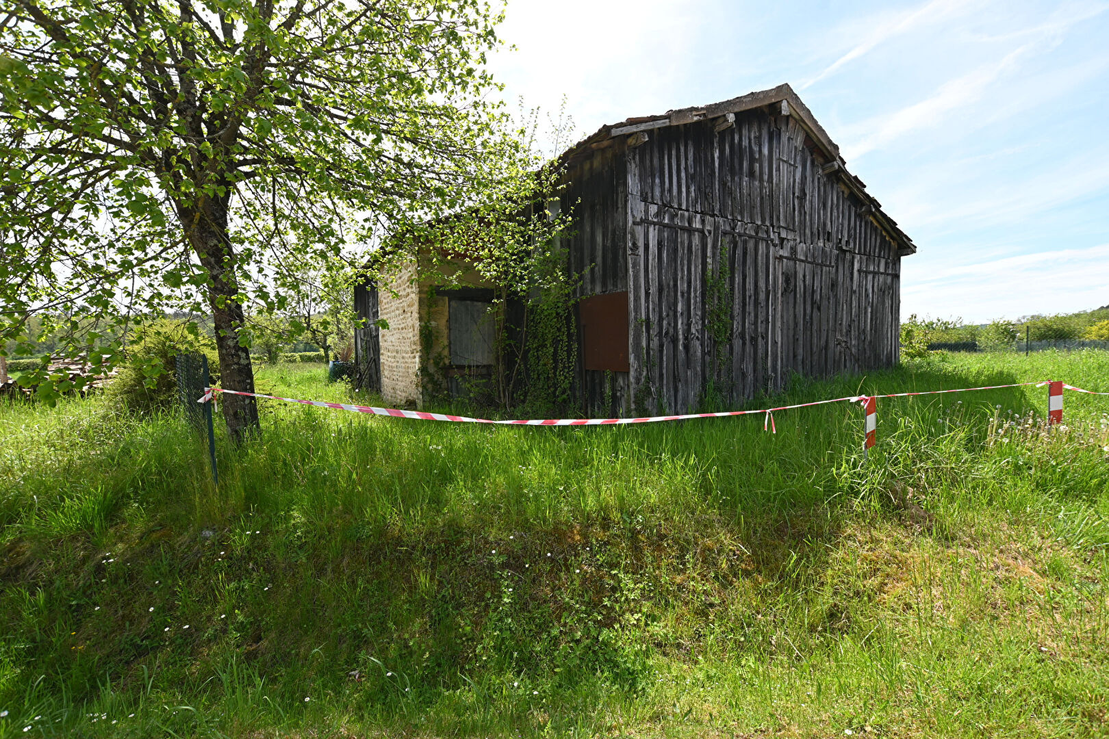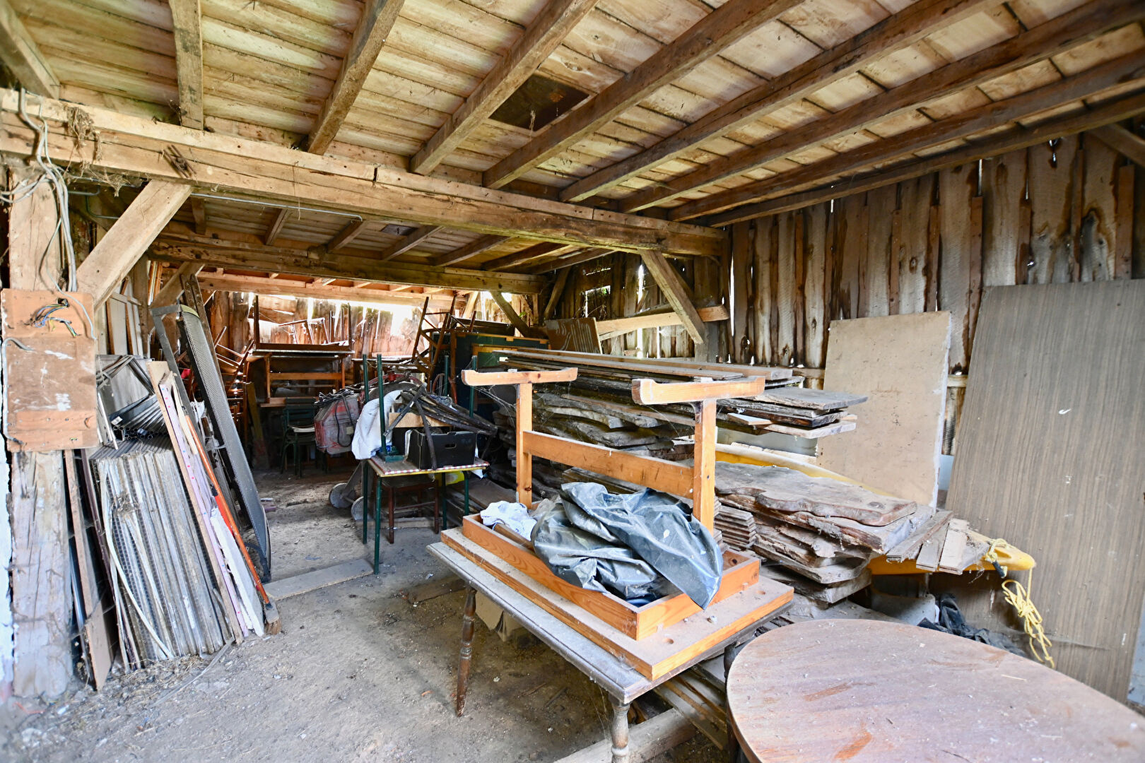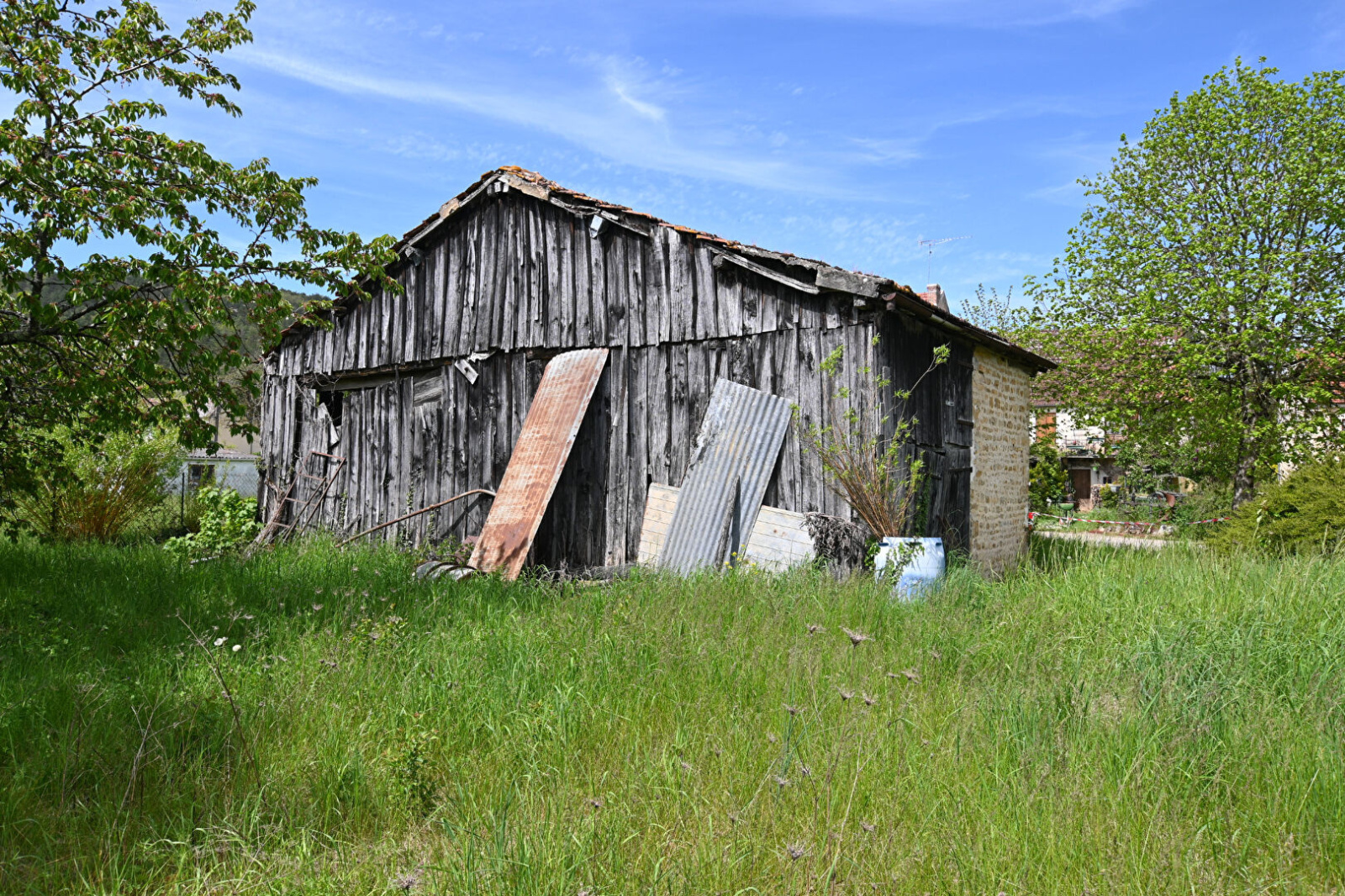 Dans le Vézelien à proximité d'une Gare TER Bourgogne. Sur un beau terrain arboré, une grange en ossature bois. Stockage, garage etc.