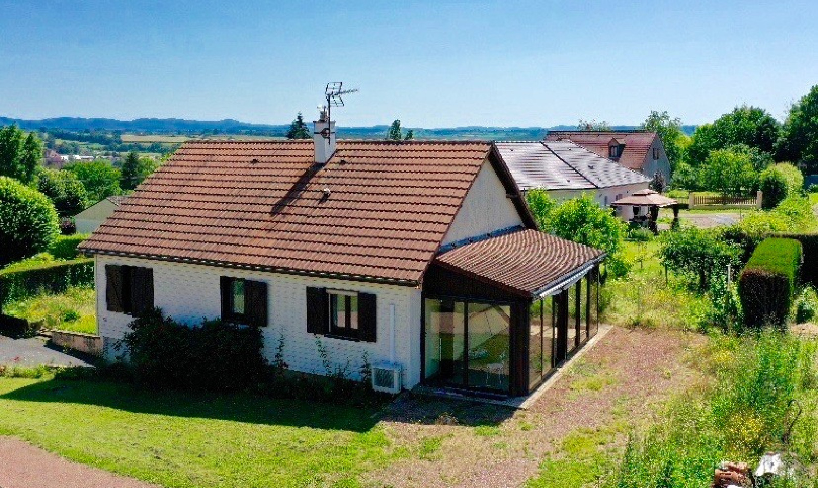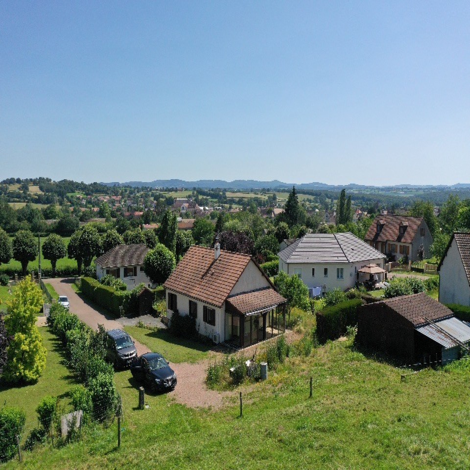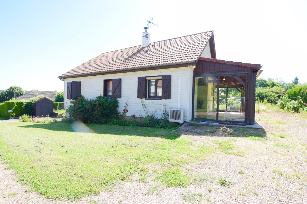 Corbigny ville tous commerces, desservie par le TER Bourgogne jusqu'à Paris. Maison, élevée sur sous-sol complet, celui-ci comprend un double espace de stationnement, un atelier, un bureau, une zone de stockage et une cave. Un insert chauffe le sous-sol et repartit la chaleur à l'étage avec un répartiteur pour la partie habitation. Au rez-de-chaussée, entrée par une véranda, qui dessert une cuisine ouverte sur le séjour donnant sur l'arrière du jardin, un dégagement bureau, un WC indépendant, une salle d'eau et deux chambres avec placards intégrés. Chauffage pompe à chaleur clim réversible et radiateurs électriques. En extérieur beau terrain et un double garage atelier.