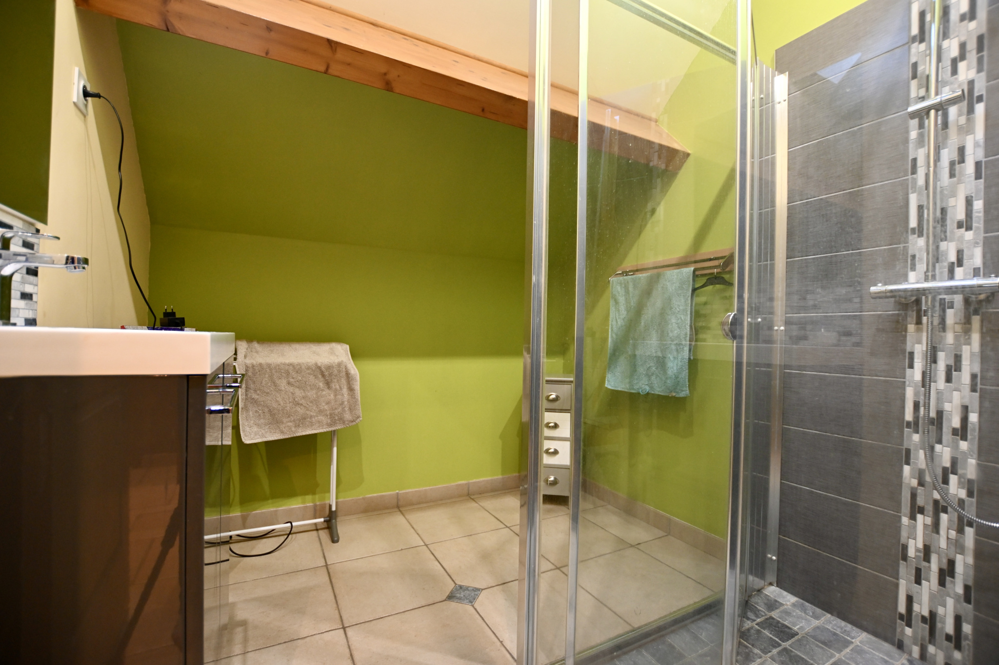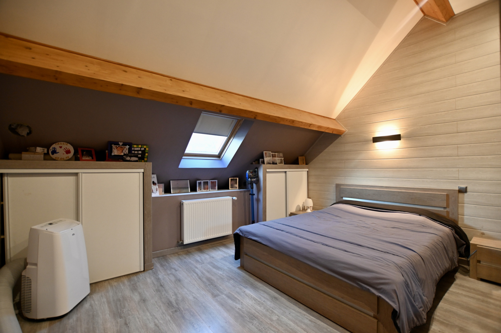 L'étage dessert quatre chambres mansardées accueillantes, une salle de douche à l'italienne et un WC indépendant, pensés pour le confort quotidien de toute la famille.