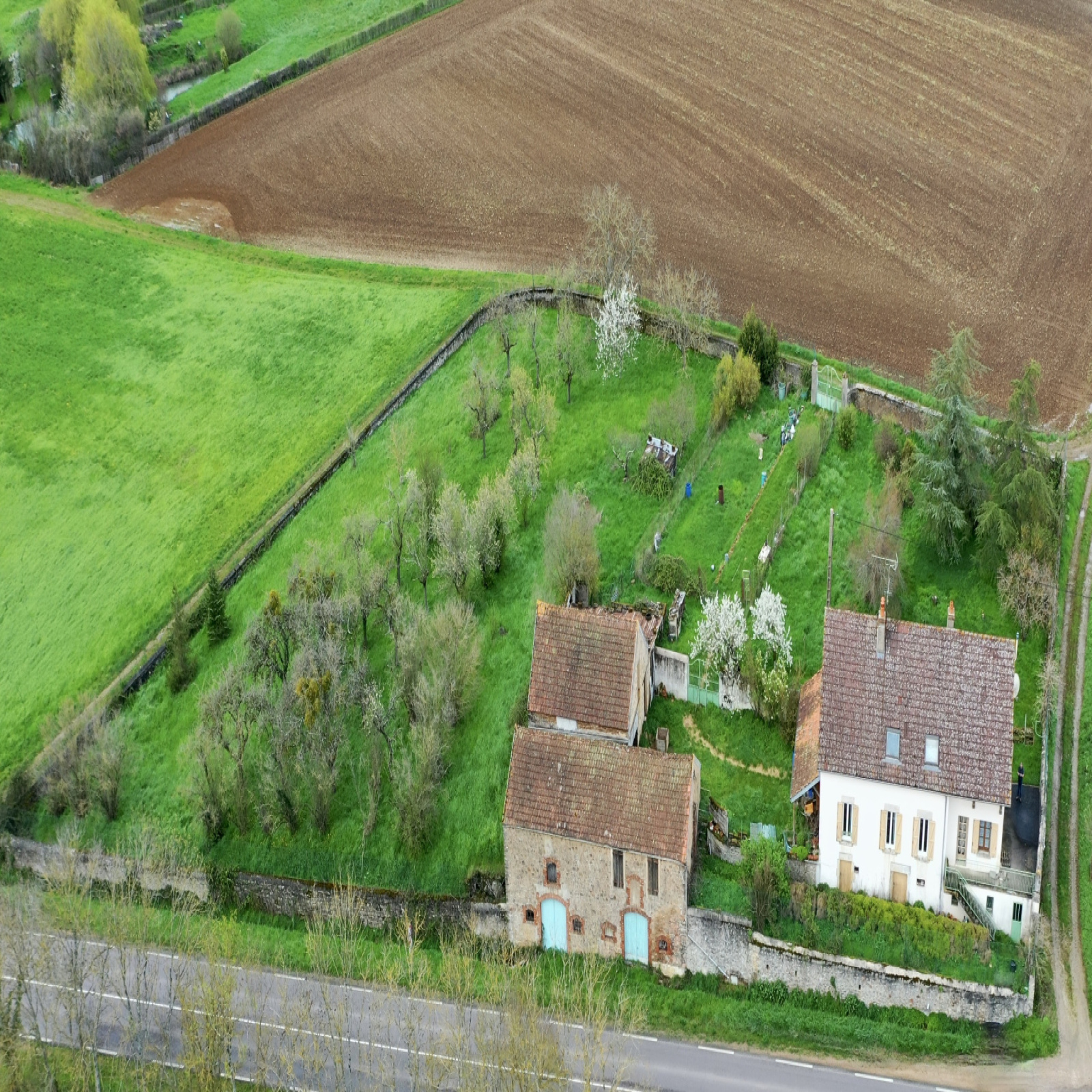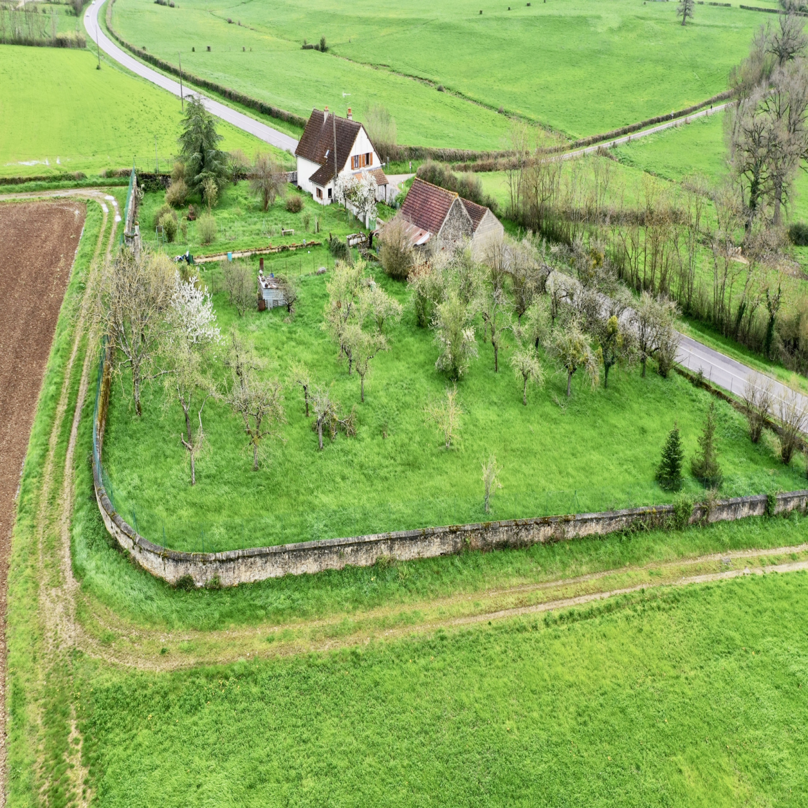 Ancien corps de ferme, clos de murs comprenant une maison et dépendances avec vergers.