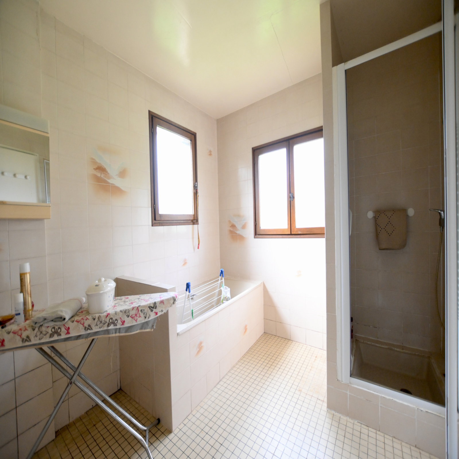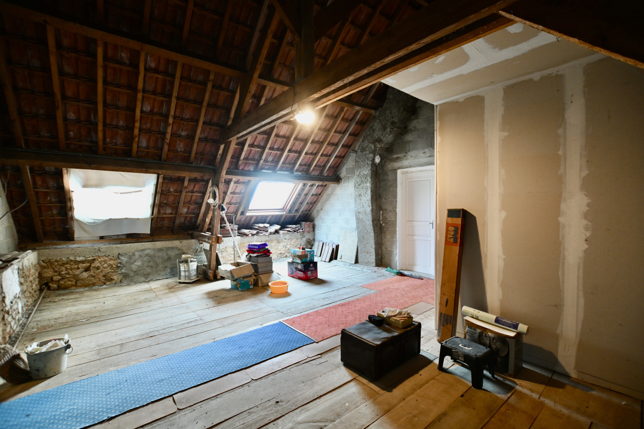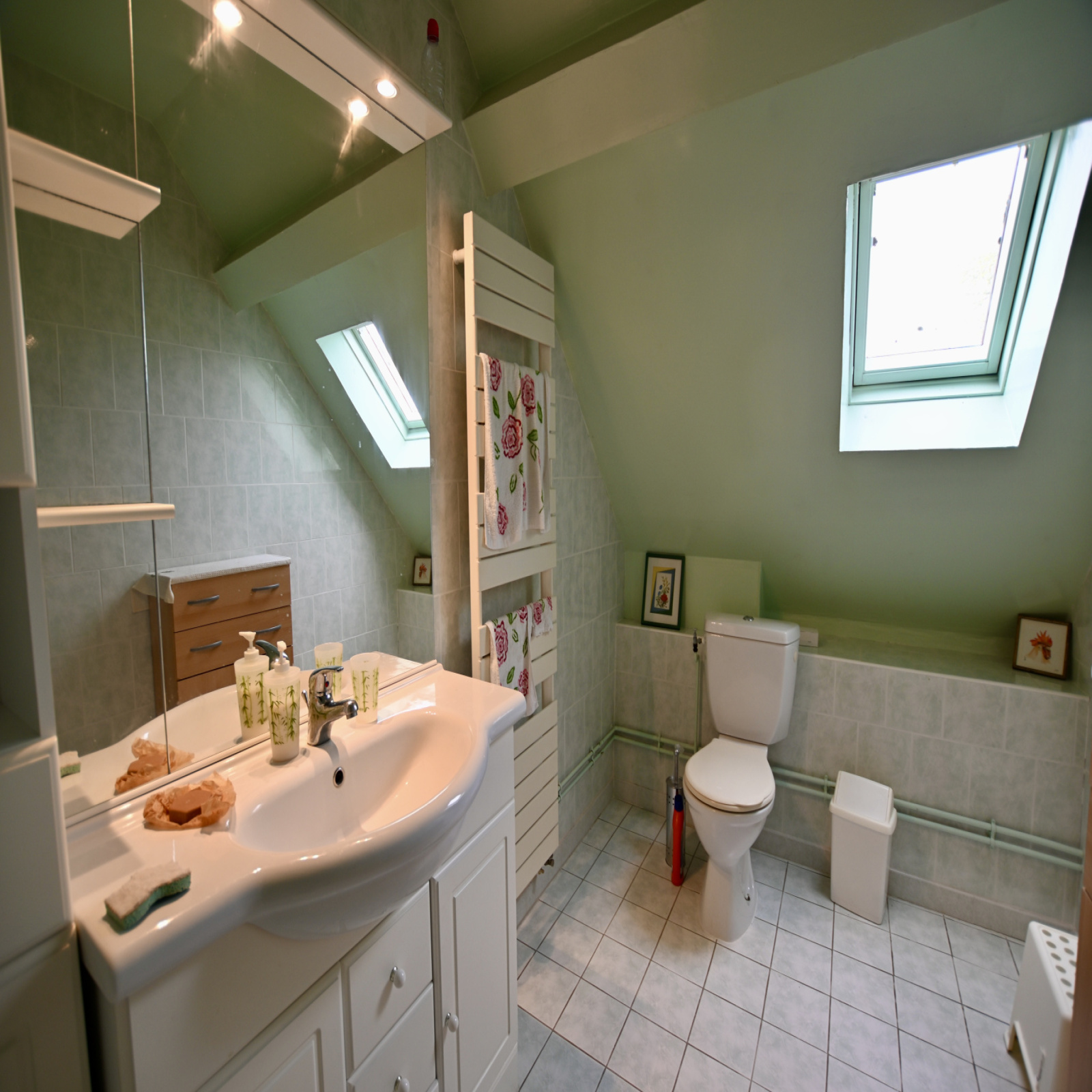 À l'étage trois chambres, un WC avec lavabos et un grenier aménageable.