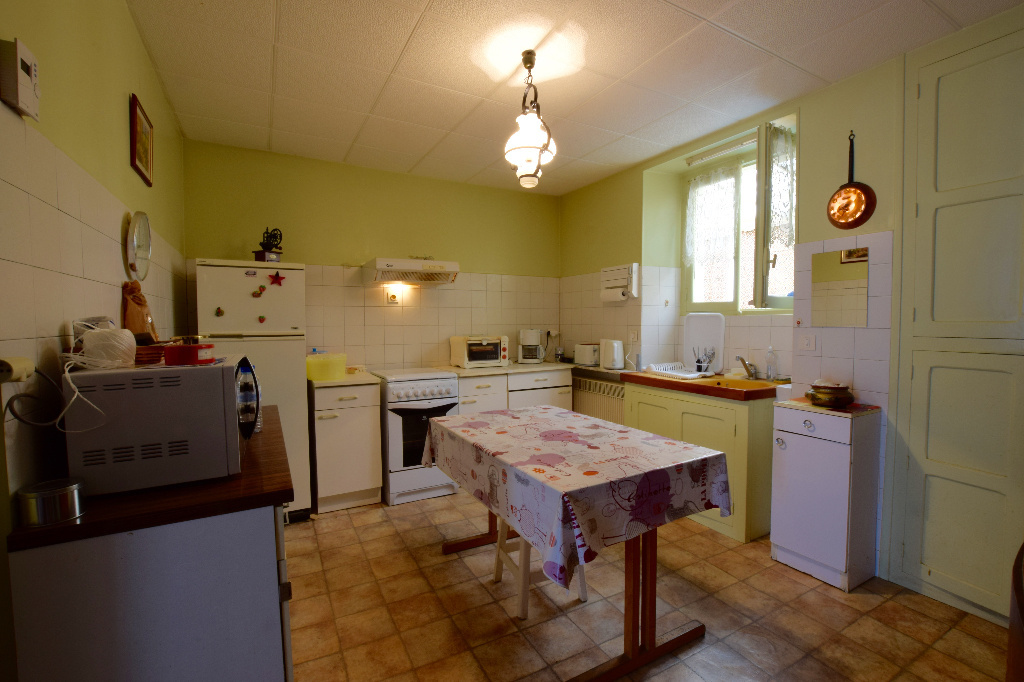 Maison au Coeur du village de Guillon. Maison au coeur du village de Guillon à 15 min d'Avallon. Le logement comprend au rez-de-chaussée : une entrée sur le séjour, une cuisine, un cellier, une salle d'eau avec un WC indépendant, une cuisine d'été donnant accès au jardin, un atelier et une cave. À l'étage un palier desservant trois chambres dont deux en enfilade, une salle de bain avec WC, au-dessus un grenier et une chambre. Chauffage électrique. Attenant à l'habitation un garage.
