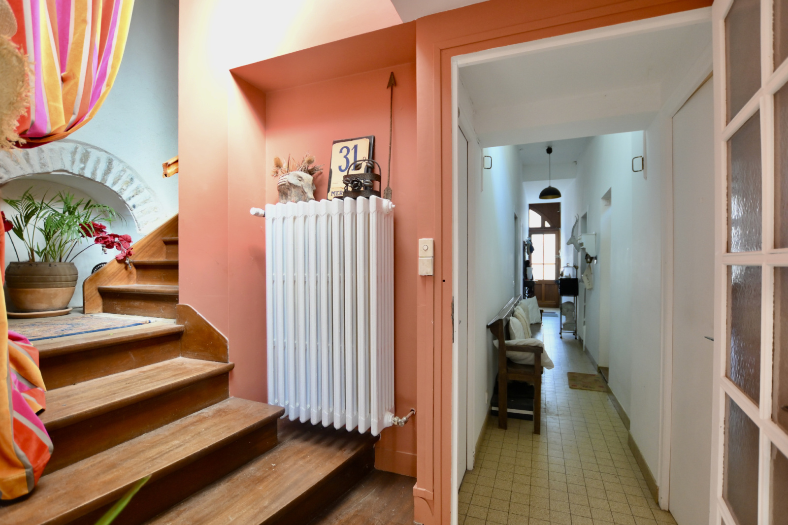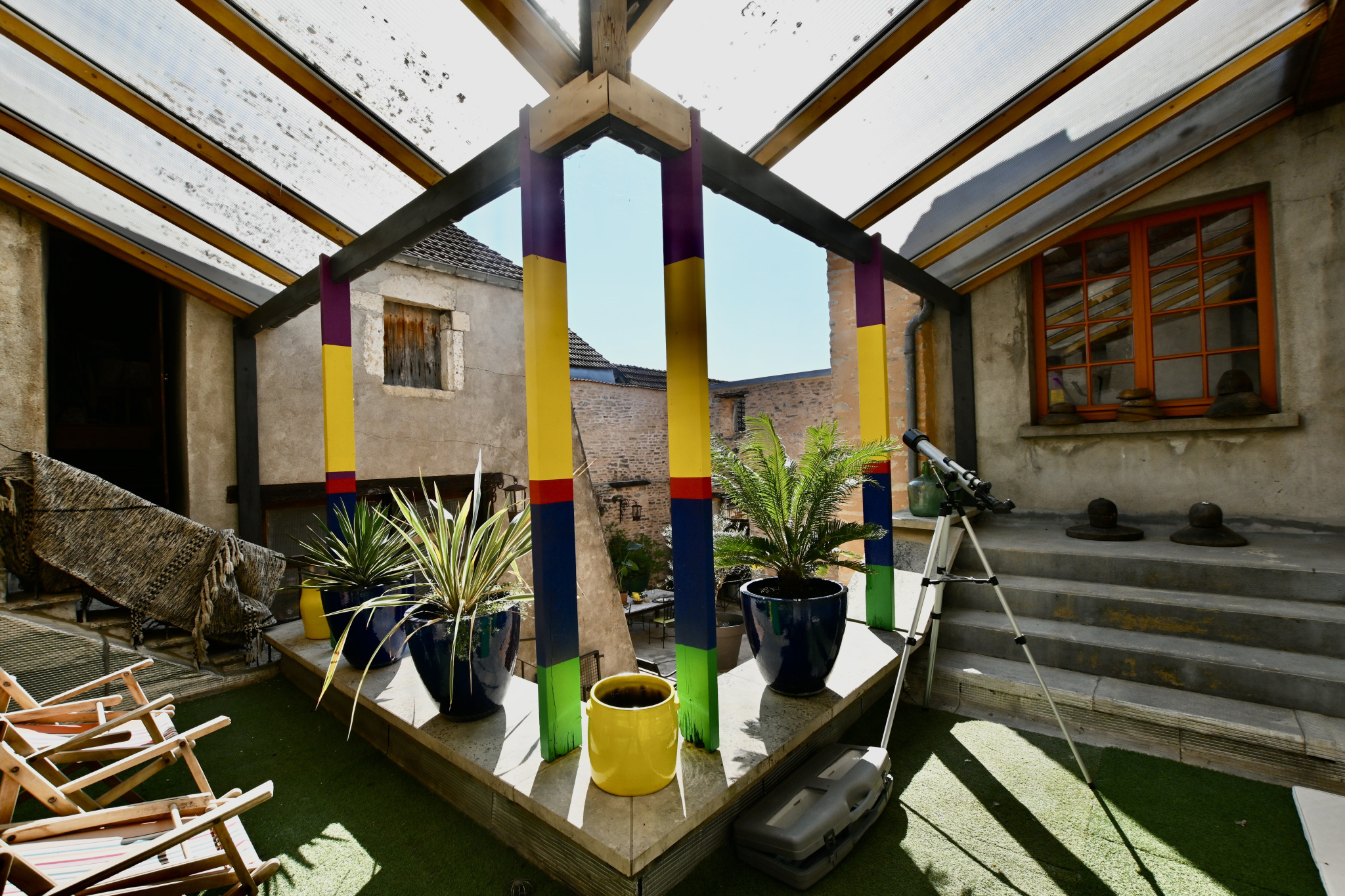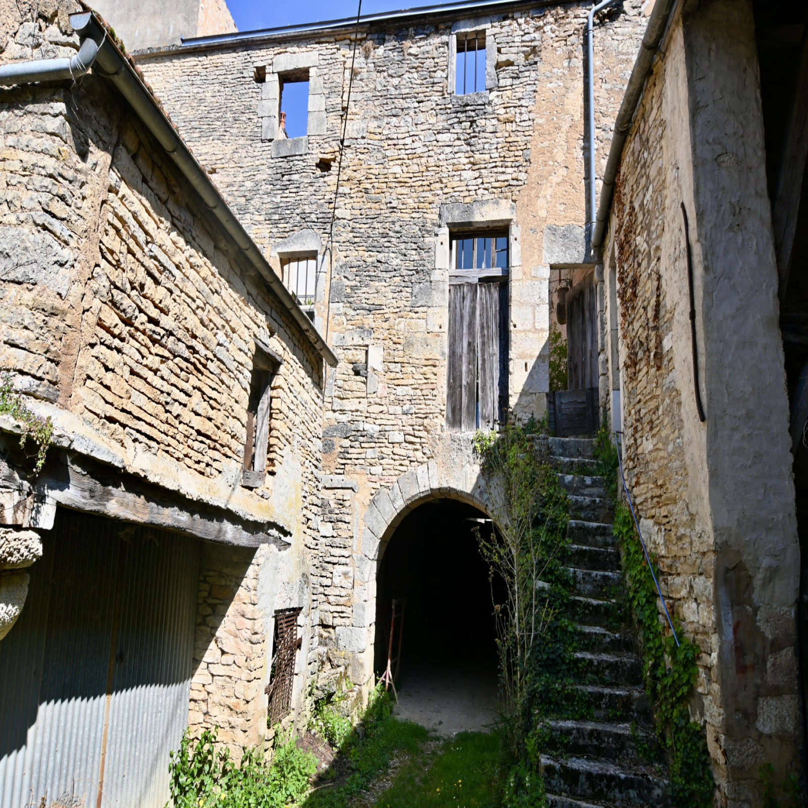 Noyers dans ce village médiéval classé parmi les plus beaux villages de France et bordé par le Serein. Je vous présente cette propriété à seulement 10 km de la sortie de l'A6 à Nitry et environ 2 h 15 de Paris. Ce bien est élevé en partie sur ces caves voûtées, celles-ci comprennent trois espaces. Le rez-de-chaussée comprend une entrée sur le couloir qui dessert une chambre, un bureau, un WC indépendant, un vaste séjour, une cuisine entre le séjour et la terrasse principale, un dégagement avec placards et un salon ou bureaux. Au premier étage droit, un palier dessert une chambre et son cabinet de toilette, un WC indépendant, une salle de bains avec douche et deux chambres, dont une équipée d'un lavabo, au-dessus de l'ensemble un vaste grenier aménageable. Au premier étage gauche un accès à la loggia, une chambre (à terminer) et au-dessus de celle-ci une terrasse au niveau des toits avec une vue sur notre belle campagne. Avec un accès par la terrasse un petit bâtiment contigu à l'habitation comprenant une pièce au premier et second étage. Cette habitation vit autour de sa terrasse intérieure dans un esprit cocooning. Vous bénéficiez également d'une grange. Ce bien atypique est ouvert à tous vos projets tant personnels que professionnels. Pour plus d'informations, je suis à votre écoute.
