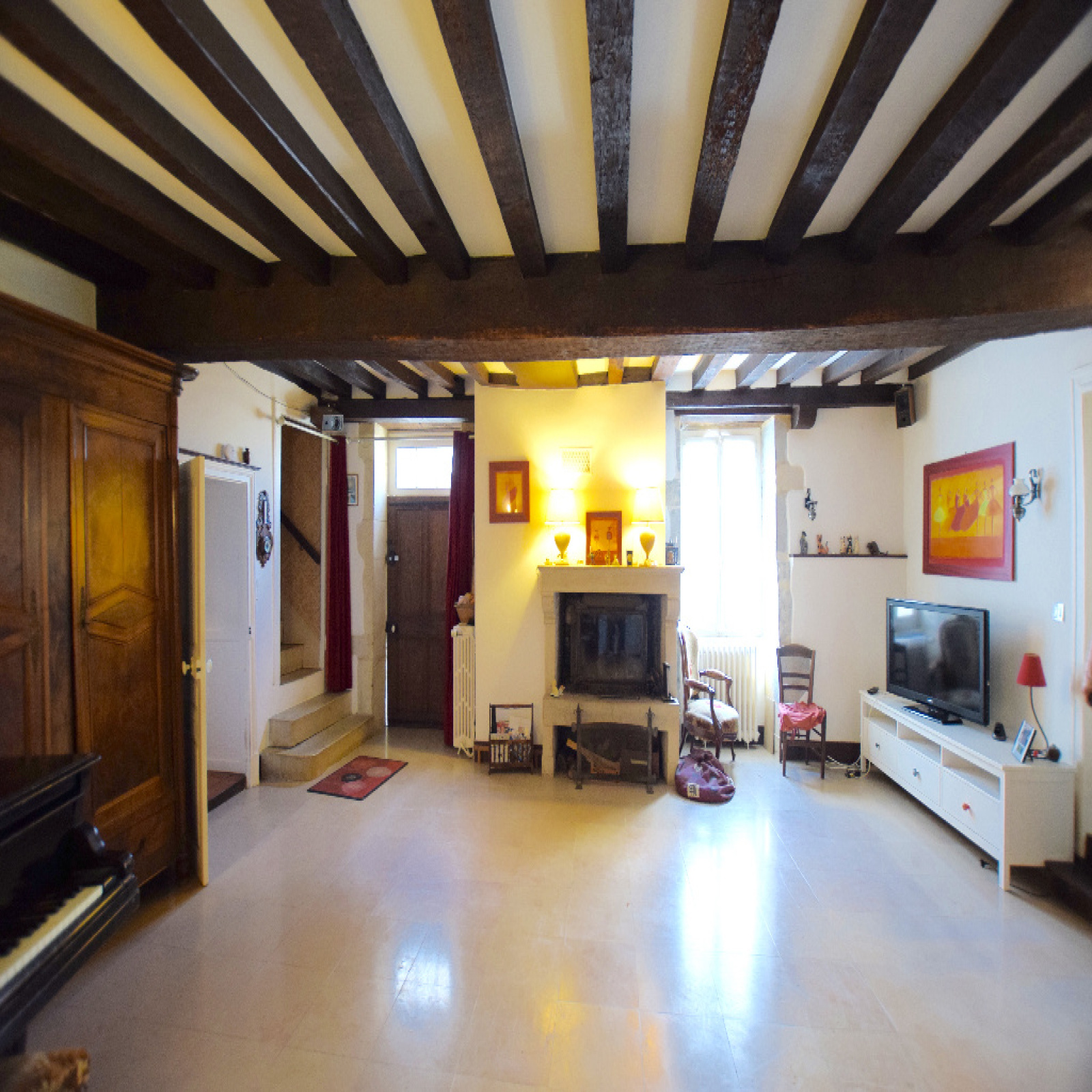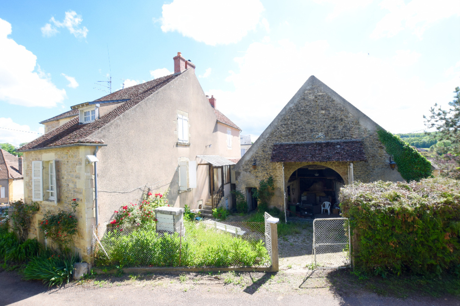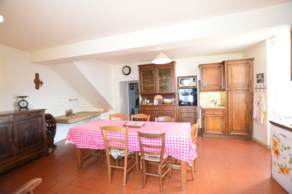 Maison de caractère, village proche Vézelay. Au Coeur d'un village, situé à 20 minutes de Vézelay. Maison de caractère élevée sur une cave voûtée et atelier. Le bien comprend: une entrée sur un séjour équipé d'un insert, grande cuisine dînatoire, une chambre et une suite parentale équipée d'une douche et d'un WC. À l'étage un second salon avec cheminée, 3 chambres dont une avec un cabinet de toilette, un WC indépendant et une salle d'eau, au-dessus de l'ensemble un grenier. En extérieur une cour avec un puits, un bûcher et une grande grange. Terrain de l'autre coté de la rue. Maison lumineuse avec vue dégagée et aux très beaux volumes.
