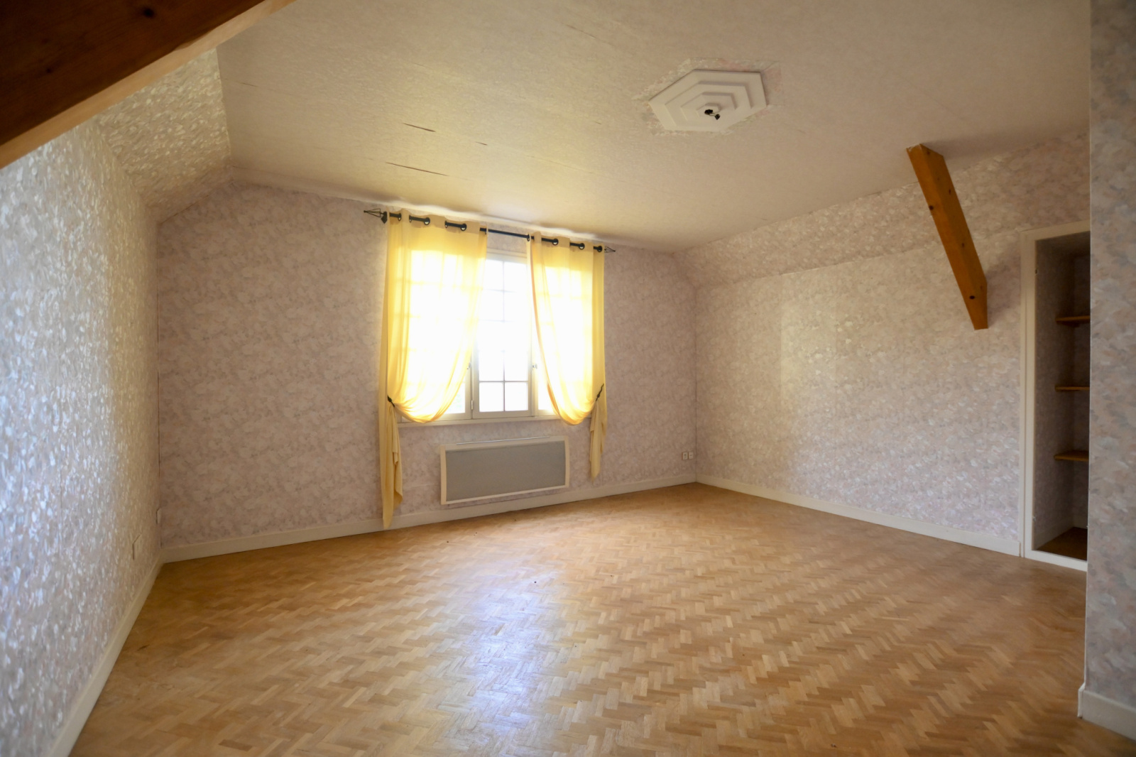 Au premier étage, un palier donnant sur un couloir dessert trois chambres, dont une avec un dressing, une salle de bains avec WC et un grenier.